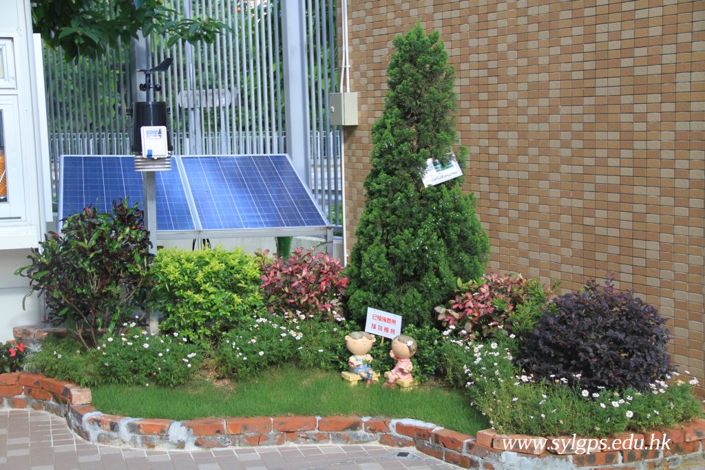 此項環保既可收 集太陽能,又能為本校同學提供環保知識,更能為同學擋雨遮蔭, 實為一舉數得。太陽能光伏板吸取太陽幅射從而產生電力,並即時輸入本校的電網內, 即時使用,以推動滅蚊燈及定時自動灑水器。 同學們可於二號雨天操場的電子顯示屏閱讀太陽能光伏即時所產生的 電量、溫度、累計減少之二氧化碳 掛放量等資訊。